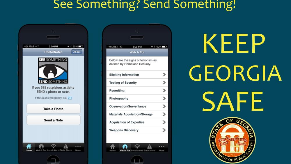 “See Something, Send Something” provides a platform to capture a photo of suspicious activity or send in information with written text. Information received in the app is sent directly to the Georgia Information Sharing and Analysis Center (GISAC) where the tips can be evaluated and provided to law enforcement across the state as needed. The application is available at no cost for iPhone and Android phone users, as well as iPad users. To download “See Something, Send Something,” click below.